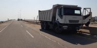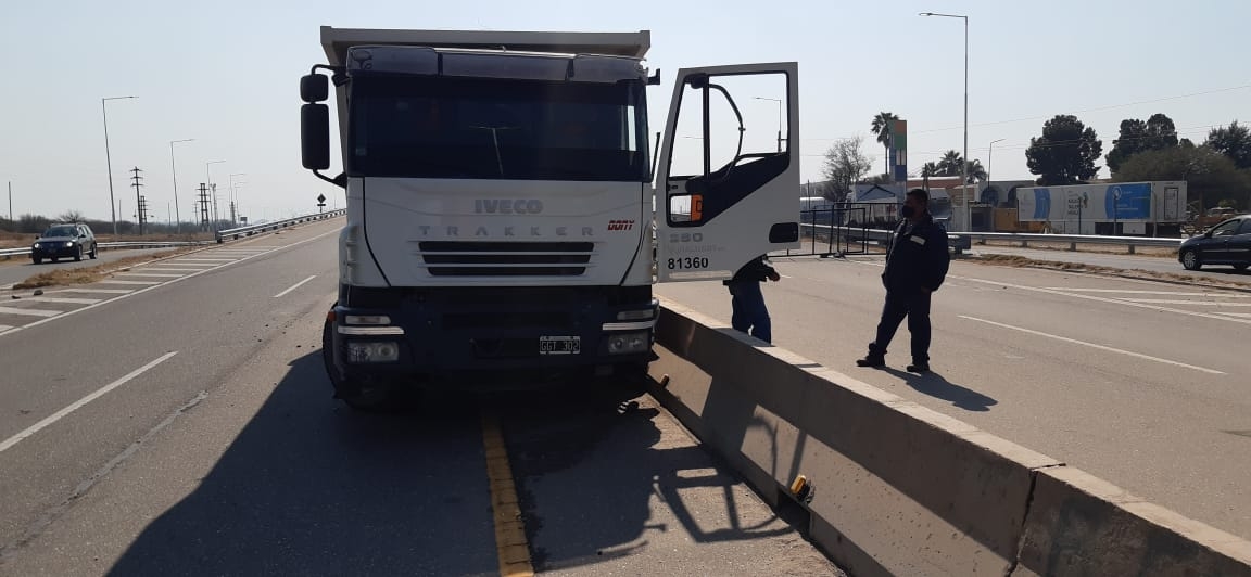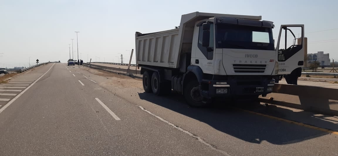 El accidente fue protagonizado por un camión que trasladaba áridos, y por fallas mecánicas, el chofer perdió el control y, para evitar chocar con otros vehículos, embistió el muro de contención y dos postes del tendido eléctrico.