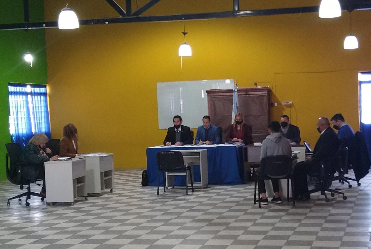 El juicio se desarrolla en el Salón de la Cultura de la localidad que fue acondicionado e inició a las 10.30 horas. En este debate, la jueza de la Sexta Circunscripción Judicial, Corina Pérez, integra el Tribunal.