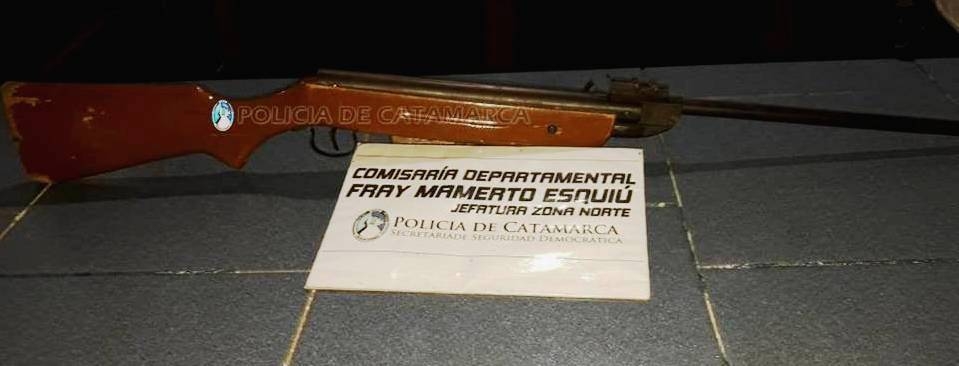 En el lugar, sorprendieron a dos niños de 14 años, llevando un rifle de aire comprimido calibre 5,5 marca Leslie, de color marrón, sin la documentación correspondiente.