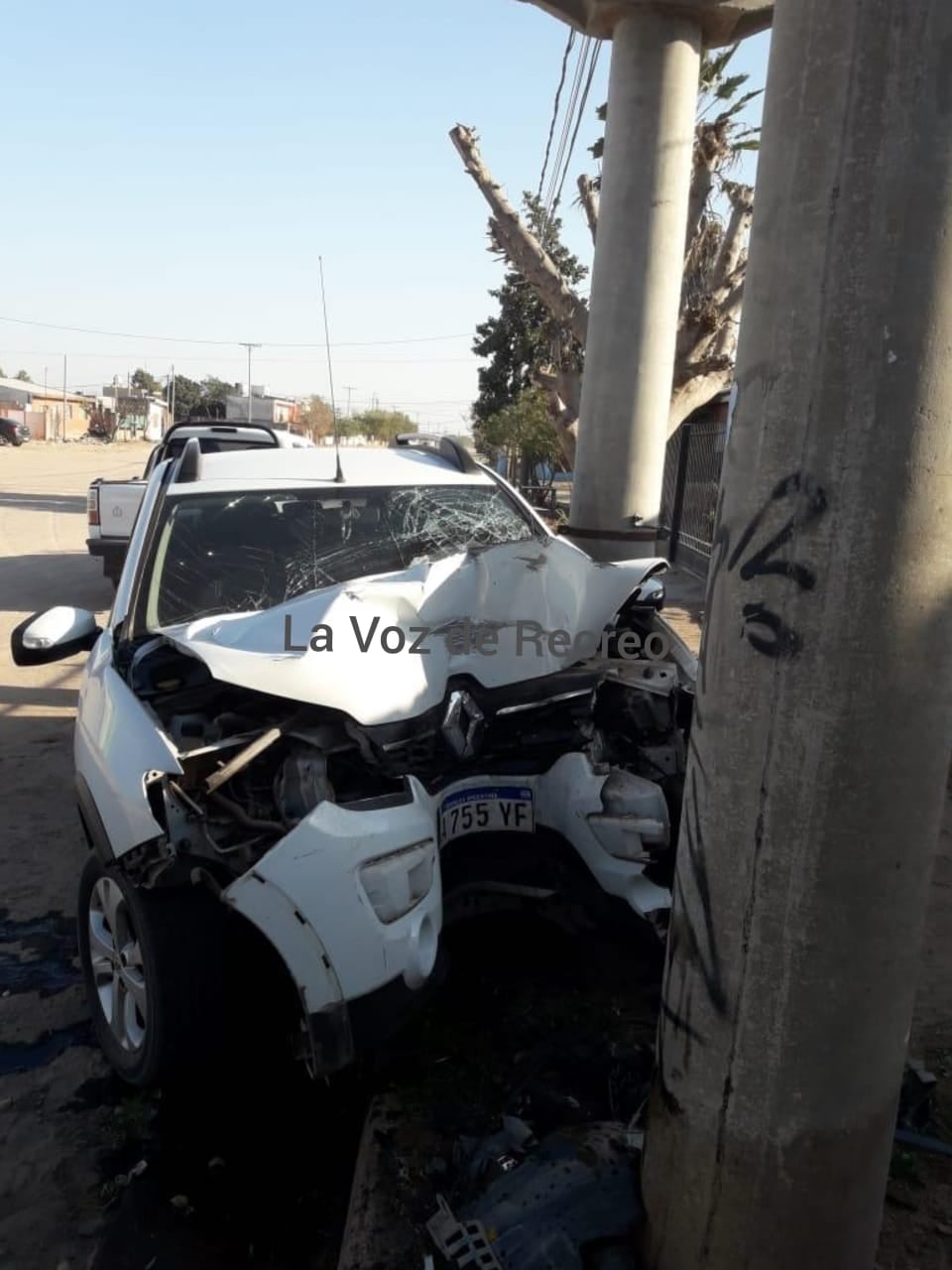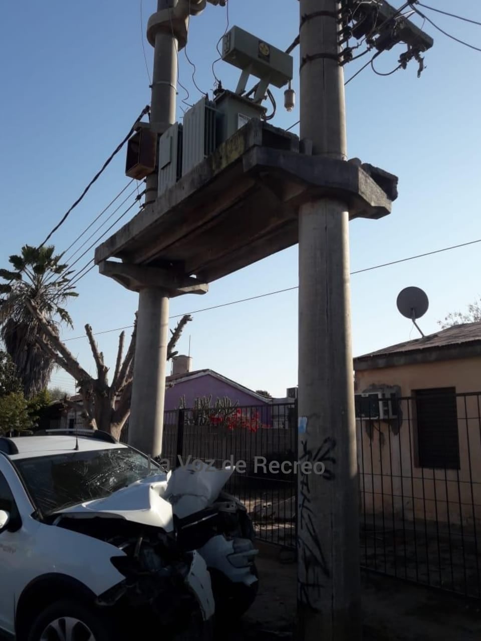 Un auto Renault Sandero, color blanco, dominio AA 755 IF, que conducía Exequiel Zerdán, de 30 años, impactó de lleno contra una columna de cemento que sostiene un transformador de electricidad, en esta zona norte de Recreo.