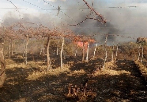 Al llegar al lugar, los policías constataron que, por razones que se tratan de establecer, el foco ígneo se habría originado en una finca de viñedos, propiedad de un hombre de apellido Reinoso (40).