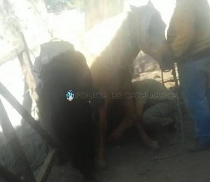 De inmediato solicitaron la presencia de personal de Bomberos Voluntarios de Valle Viejo, quien junto al personal policial interviniente logró rescatar al animal.