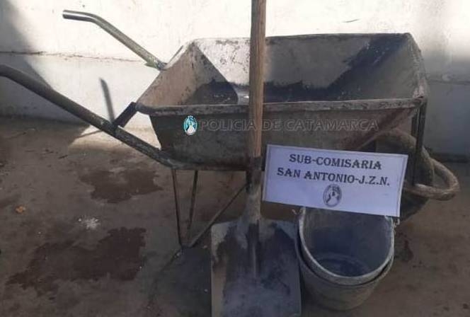 De inmediato se inició una persecución, que finalizó en un descampado, donde fue aprehendido un joven de apellido Monasterio (18), a quien se le secuestró una carretilla. En tanto, el otro sujeto de 17 años fue demorado a los pocos metros, y le incautaron una pala y dos baldes de albañil.