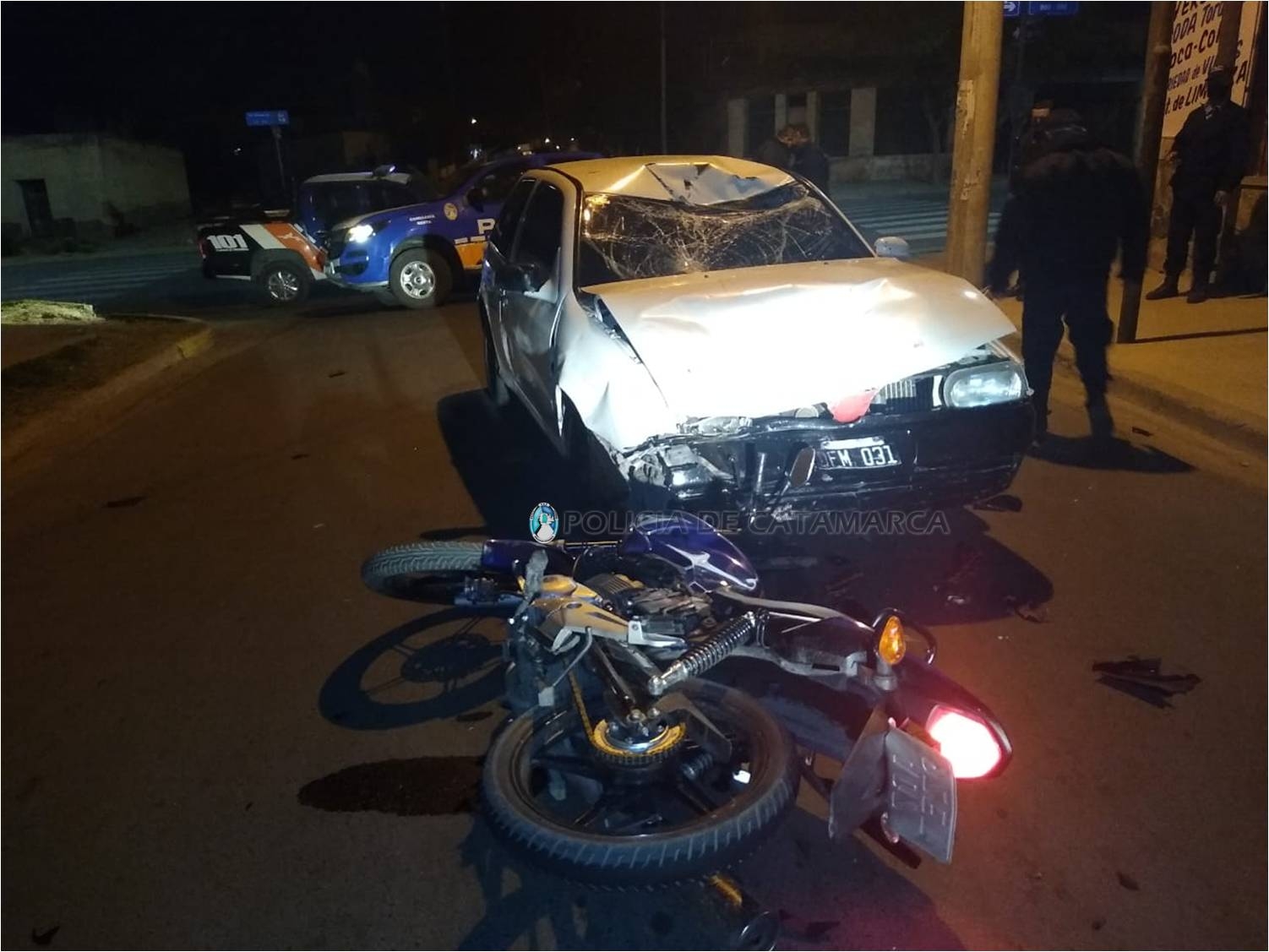Minutos más tarde, a las 3.40, en la Avenida Ramón Rosa López S/N°, a la altura del Complejo Deportivo La Rosa, de la localidad de San Antonio, Fray Mamerto Esquiú, se produjo un siniestro vial.