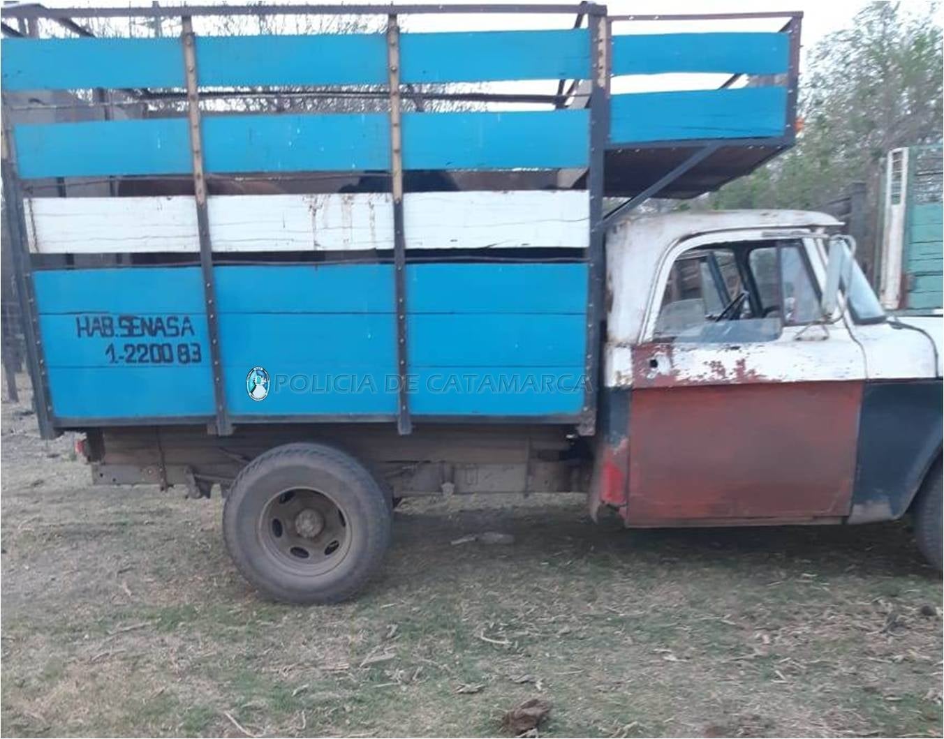 En el lugar, procedieron a controlar una camioneta marca Dodge D200, dominio UXC-228, de colores negro, bordó celeste y blanco, conducida por un hombre de apellido Reinoso, de 62 años, en compañía de otro hombre de apellido Gonzales, de 51 años.