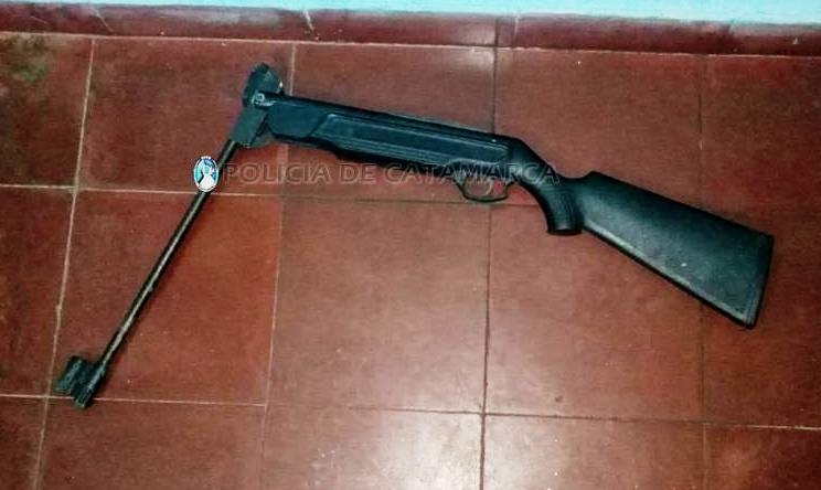 Al llegar al lugar, los policías procedieron a la aprehensión de un hombre de apellido Perea, de 34 años, quien habría lesionado con un rifle de aire comprimido calibre 5,5 mm., de color negro, a un joven de 27 años, causándole heridas en sus extremidades inferiores, abdomen y rostro.