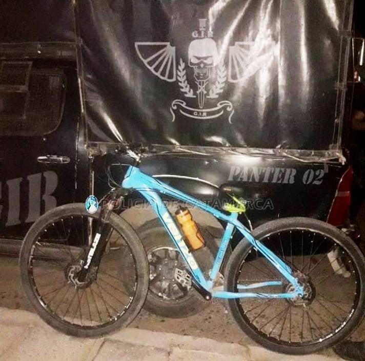 De acuerdo a las características brindadas, el personal policial interviniente realizó recorridos por la zona, y en la plaza del barrio Santa Marta, sorprendió al presunto autor del hecho a bordo de la bicicleta mencionada, quien al percatarse de la presencia policial se dio la fuga dejando abandonado el rodado en el lugar.