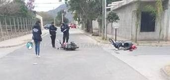 Un adolescente de 17 años conducía una motocicleta Honda Invicta 150 cc., de color bordó, dominio 752-KKF, y por causas que son materia de investigación, colisionó con una Zanella 110 cc., de color azul, al mando de Dayana Ortiz (22).