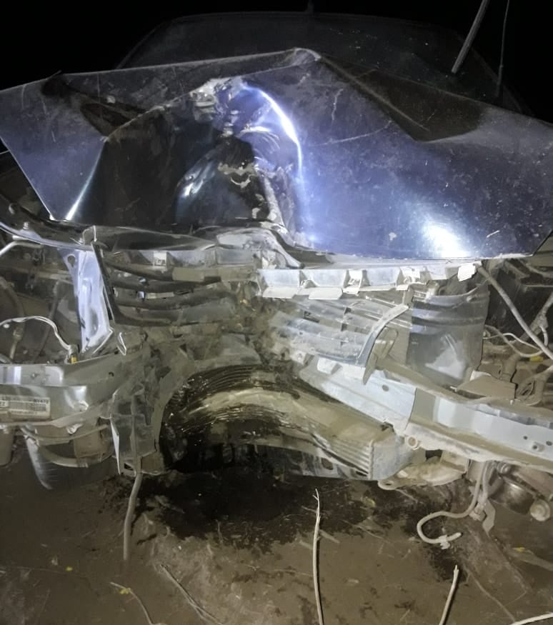 Por el fuerte impacto, el conductor tenía un profundo corte en la frente, mientras que sus acompañantes, dos jovencitas adolescentes, no sufrieron lesiones de gravedad.