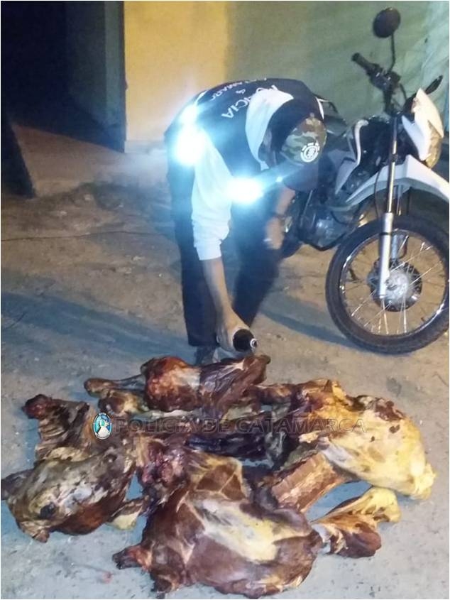 En el lugar, procedió a controlar a los ocupantes de una camioneta Peugeot 504. Al inspeccionar el rodado, los policías observaron que estas personas transportaban carne vacuna.