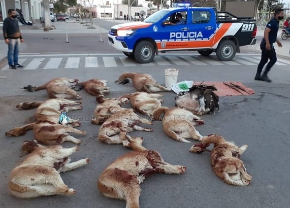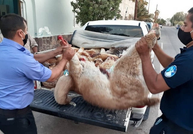Al inspeccionar el rodado, los Policías observaron que estas personas transportaban en la caja del vehículo 9 vicuñas, 3 guanacos, 1 suri, y un quirquincho muertos, como así también dos rifles calibre 22 mm., con varios cartuchos del mismo calibre, y 5 armas blancas con sus respectivas vainas, que quedaron en calidad de secuestro.