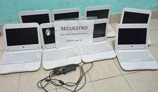 En inmuebles ubicados en los barrios La Cancha y El Talar, de la localidad mencionada, los Policías arrestaron en averiguación del hecho a una mujer de apellido Zurita, de 42 años de edad, y a un hombre de apellido Fernández de 34 años, quienes serían los presuntos autores del ilícito, como así también lograron recuperar 8 Netbook, de color blanco, que quedaron en calidad de secuestro.