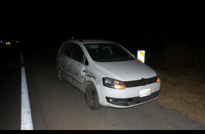 El accidente fue protagonizado por una motocicleta Motomel Skua 250 cc., de colores blanco y negro, dominio A046XIS, en la que circulaban Antonio Hernán Acosta (31) y José Daniel Romero (49), que por causas que se tratan de establecer colisionó con un automóvil Volkswagen Suran blanco, dominio NAB-656, conducido por Laura Soldavini (40).