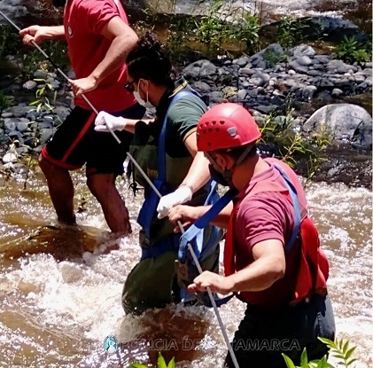 Allí, y tras realizar las tareas de su especialidad, ayudaron a profesionales médicos del SAME a cruzar el río El Tala, quienes luego asistieron en el lugar a una mujer de 69 años, de apellido Carrizo, quien presentaba un fuerte dolor en el pecho, y requería los primeros auxilios.