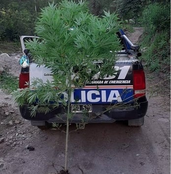 Ayer viernes, a las 20 mientras efectivos de la Comisaría de Miraflores realizaban recorridos de prevención en inmediaciones a la Cuesta de Los Ángeles, encontraron una planta de Marihuana, de aproximadamente 2 metros de altura.