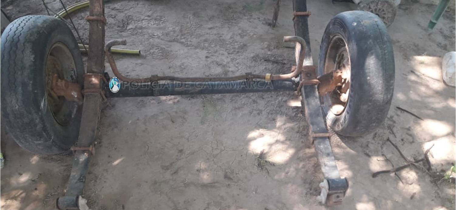 Conforme una denuncia penal radicada en la dependencia policial, en la que un hombre mayor de edad, manifestó que personas desconocidas le habrían sustraído un eje con dos ruedas, tras averiguaciones practicadas, a las 12 del mediodía de este lunes, personal de la Comisaría Departamental Recreo materializó un registro domiciliario en un domicilio de la calle Pueyrredón del barrio Centro, de esa ciudad del departamento La Paz, propiedad de una familia de apellido Díaz.