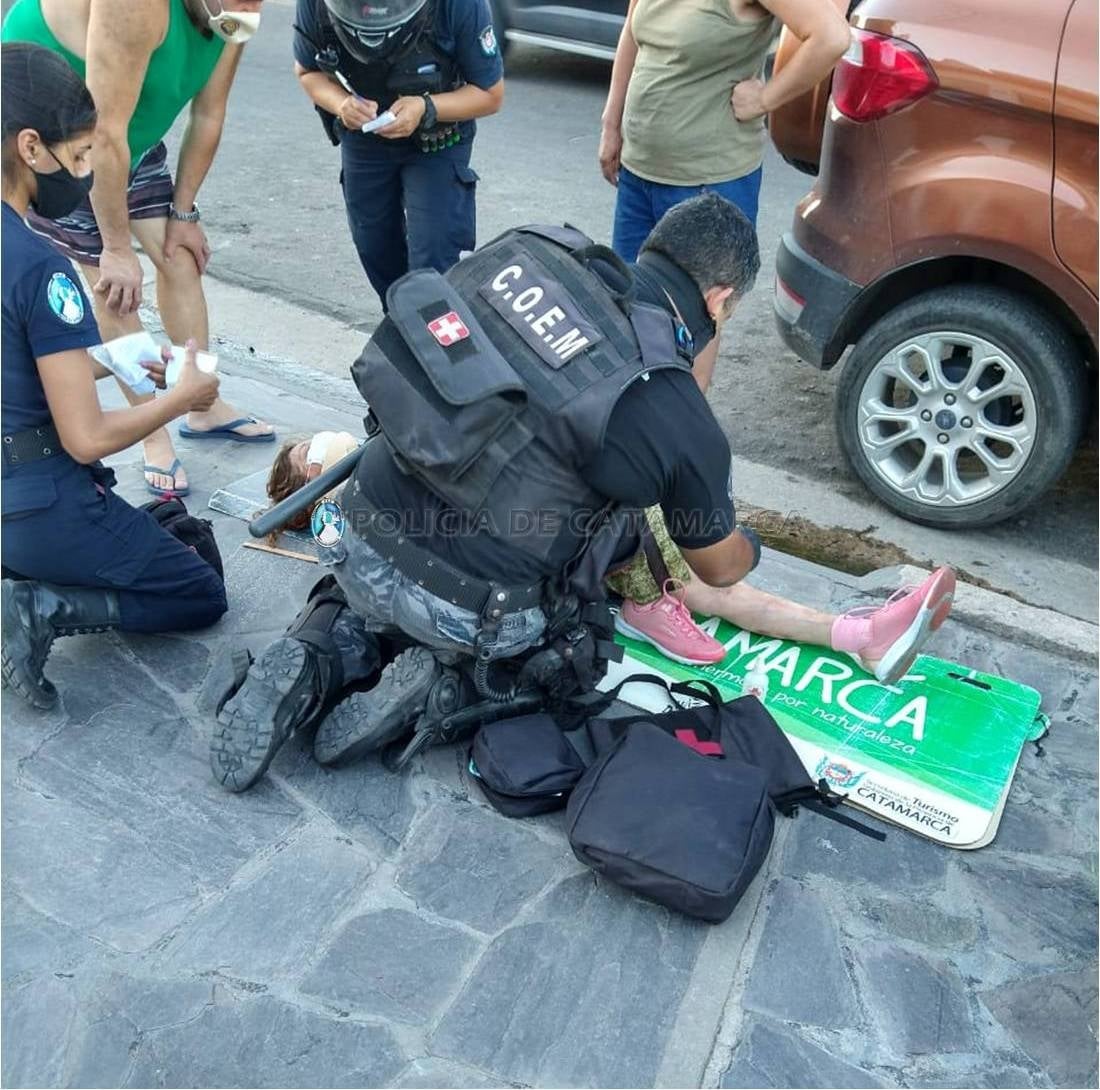 En el lugar, le brindó los primeros auxilios a una mujer de 60 años, quien por causas que se tratan de establecer, se habría caído sufriendo lesiones en distintas partes del cuerpo.