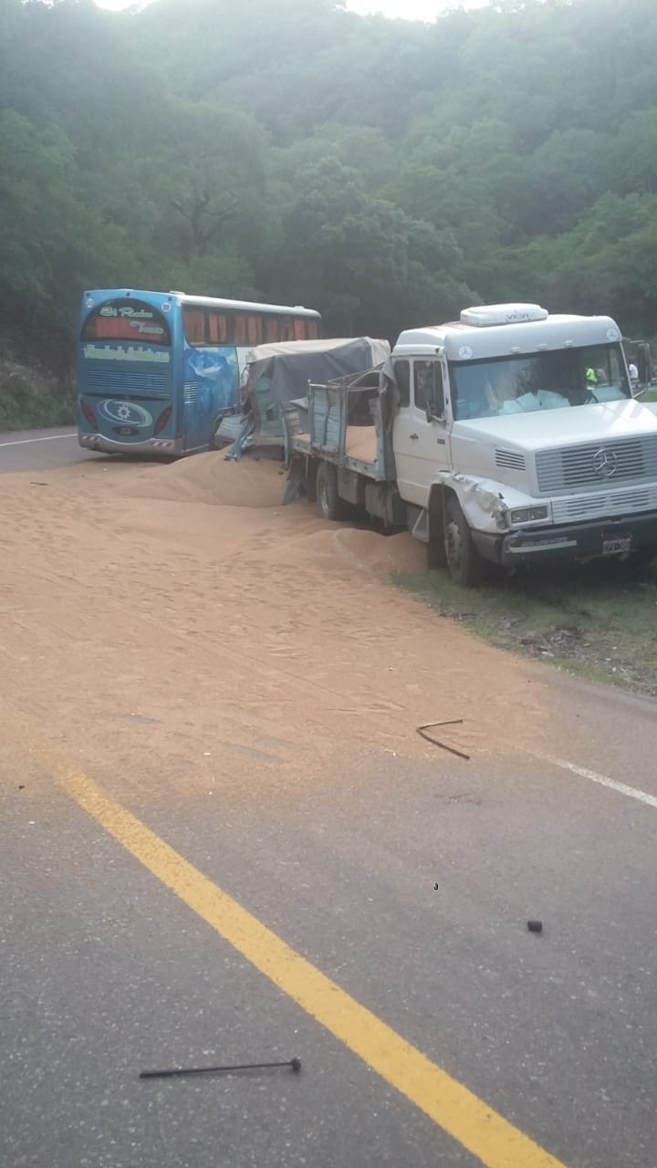 En el lugar, un camión con acoplado que trasladaba trigo, que salió desde Catamarca con destino a la Capital santiagueña, al llegar a la zona denominada "curva la S", se habría quedado sin frenos e impactó contra uno de los laterales de un colectivo que provenía de Loreto y se dirigía a Catamarca.