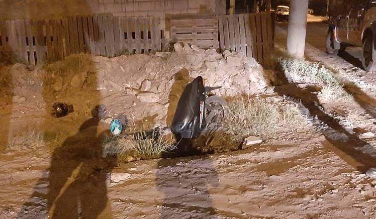 Iván Barrionuevo (26) circulaba en una motocicleta Brava negra 110 cc., dominio 169-KQL, y por causas que son materia de investigación, perdió el control del rodado y cayó a un pozo existente en la zona, sufriendo lesiones que demandaron que fuera asistido por profesionales médicos del SAME.