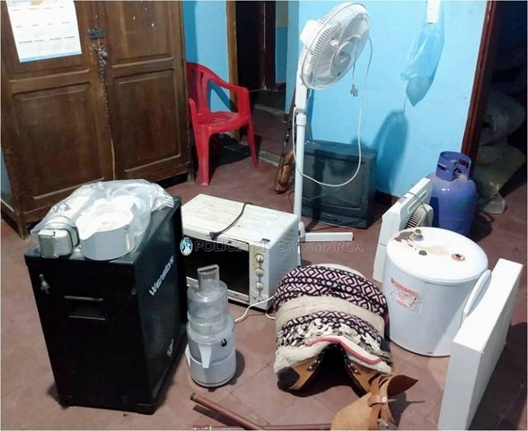 Según informó la policía, se trata de ) escopeta calibre 16 mm; 1 carabina; 1 televisor de color de negro; 2 ventiladores; 1 montura completa; 1 luz LED de emergencia; 1 parlante negro; 1 multiprocesadora; 1 garrafa de de gas de 10 kg.