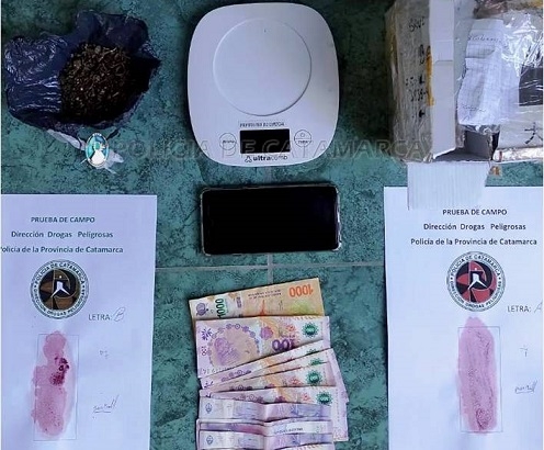 En el lugar, el personal policial interviniente incautó una sustancia tipo herbácea, que luego de ser sometida a la prueba de campo correspondiente se logró establecer que se tratarían de 23 Gr. de Marihuana, elementos utilizados para el fraccionamiento de la sustancia, una motocicleta Yamaha FZ negra 160 cc., dinero en efectivo, una balanza apta para pesar gramos, y un teléfono celular Samsung negro.