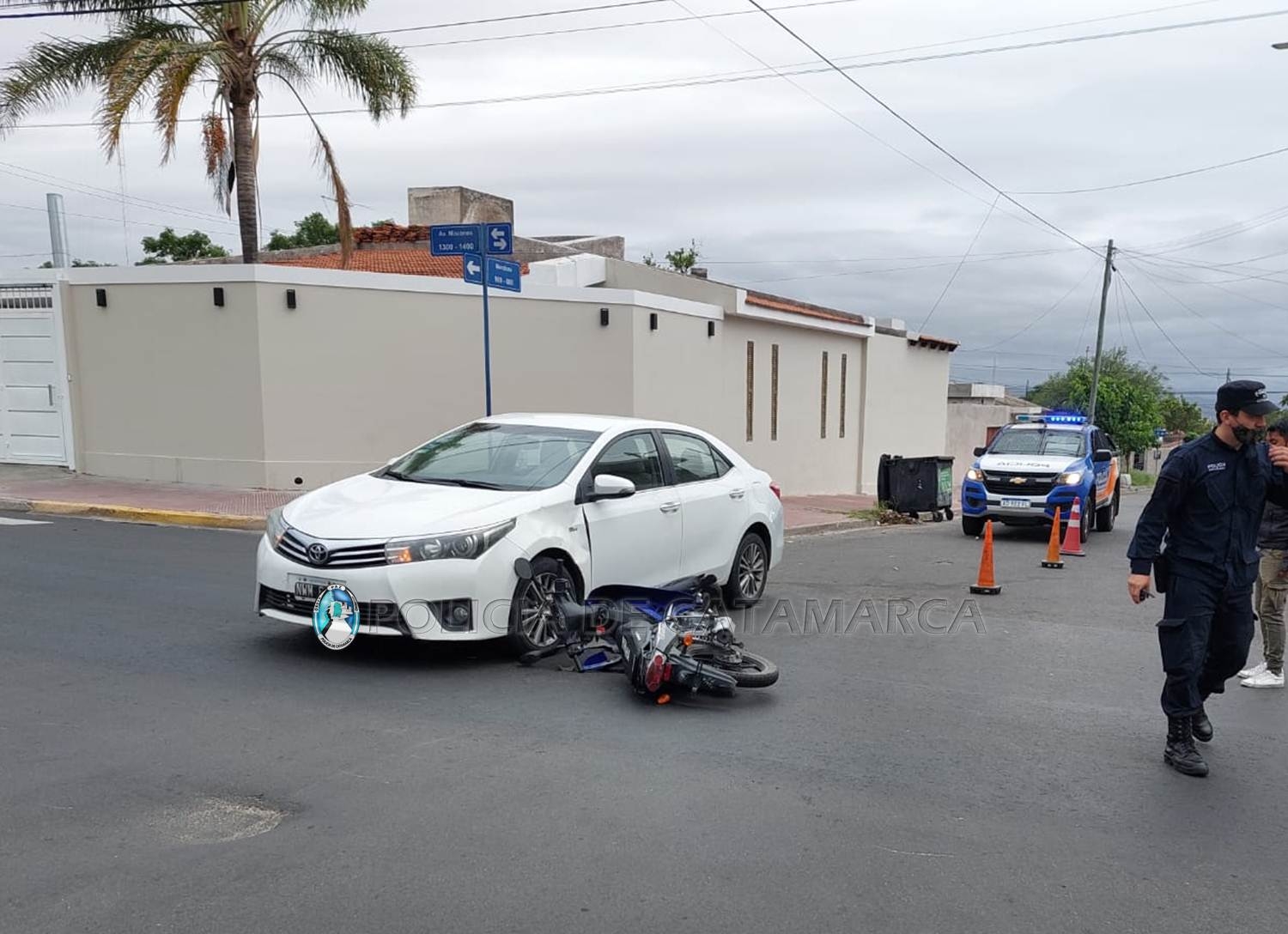El accidente fue protagonizado por una motocicleta Yamaha Crypton 110 cc. azul, dominio A074JMA, conducida por Talia María Luz Calleja (25) quien, por razones que son materia de investigación, colisionó contra un automóvil Toyota Corolla, dominio NWM-676, de color blanco, al mando Erina Tapia (35).