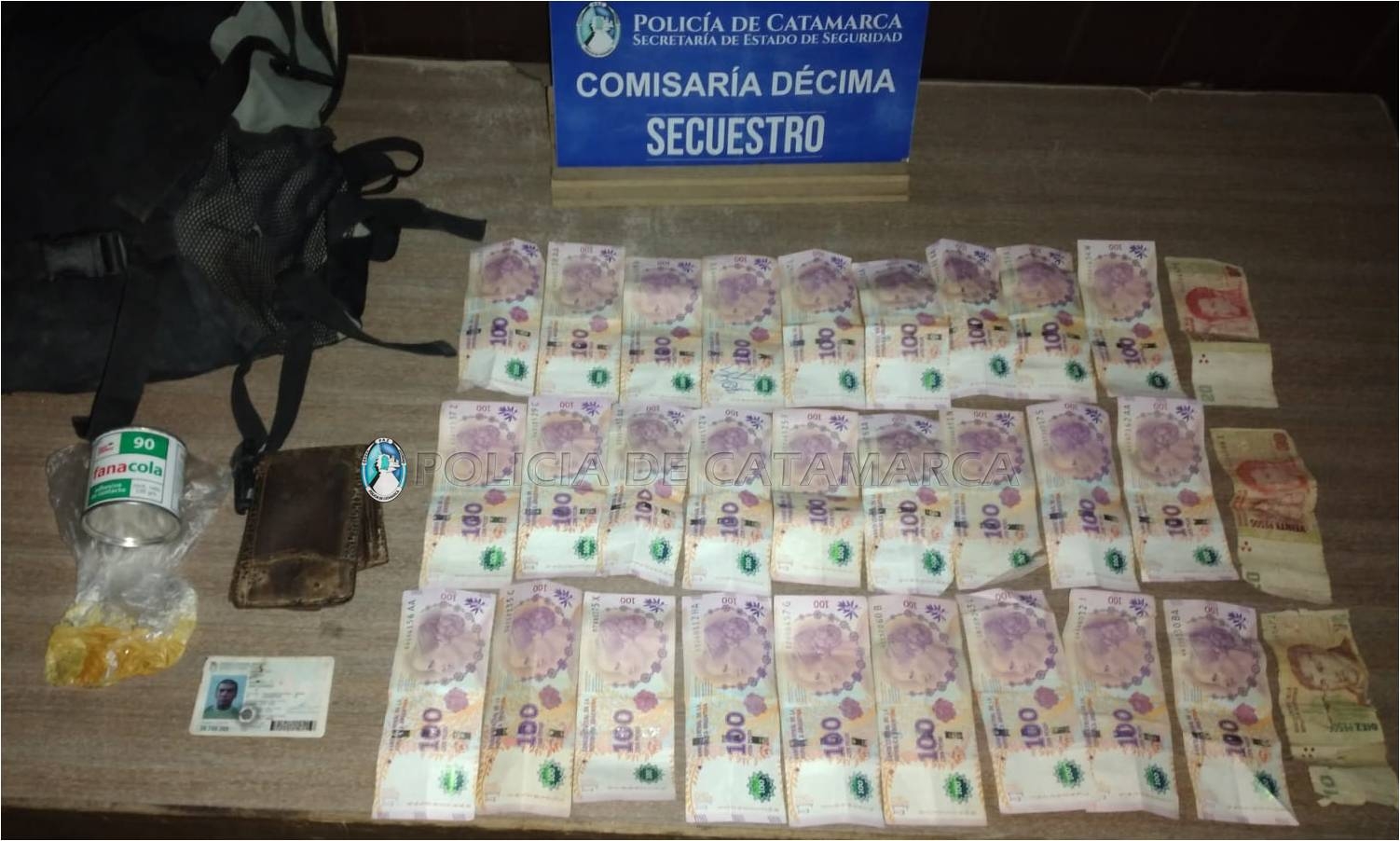 Cabe señalar que, al realizarle la requisa correspondiente, le encontraron entre las prendas de vestir una billetera con documentación a nombre de otra persona y dinero en efectivo, como así también llevaba una mochila que contenía un bote de pegamento epóxido.