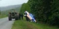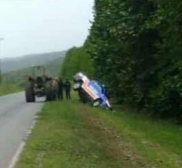 Al intentar correr a los animales sueltos en la calzada, se dieron con una alcantarilla sin señalizar, quedando el móvil atascado, de costado, sobre la banquina.