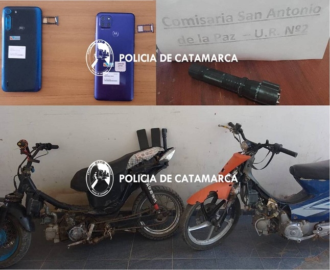 En dichos inmuebles, y bajo las directivas de la Fiscalía de la Sexta Circunscripción Judicial, a cargo de la Dra. Graciela Jorgelina Sobh, los Policías secuestraron dos teléfonos celulares, ambos marca Motorola, una linterna tipo picana negra y dos motocicletas 110 cc.