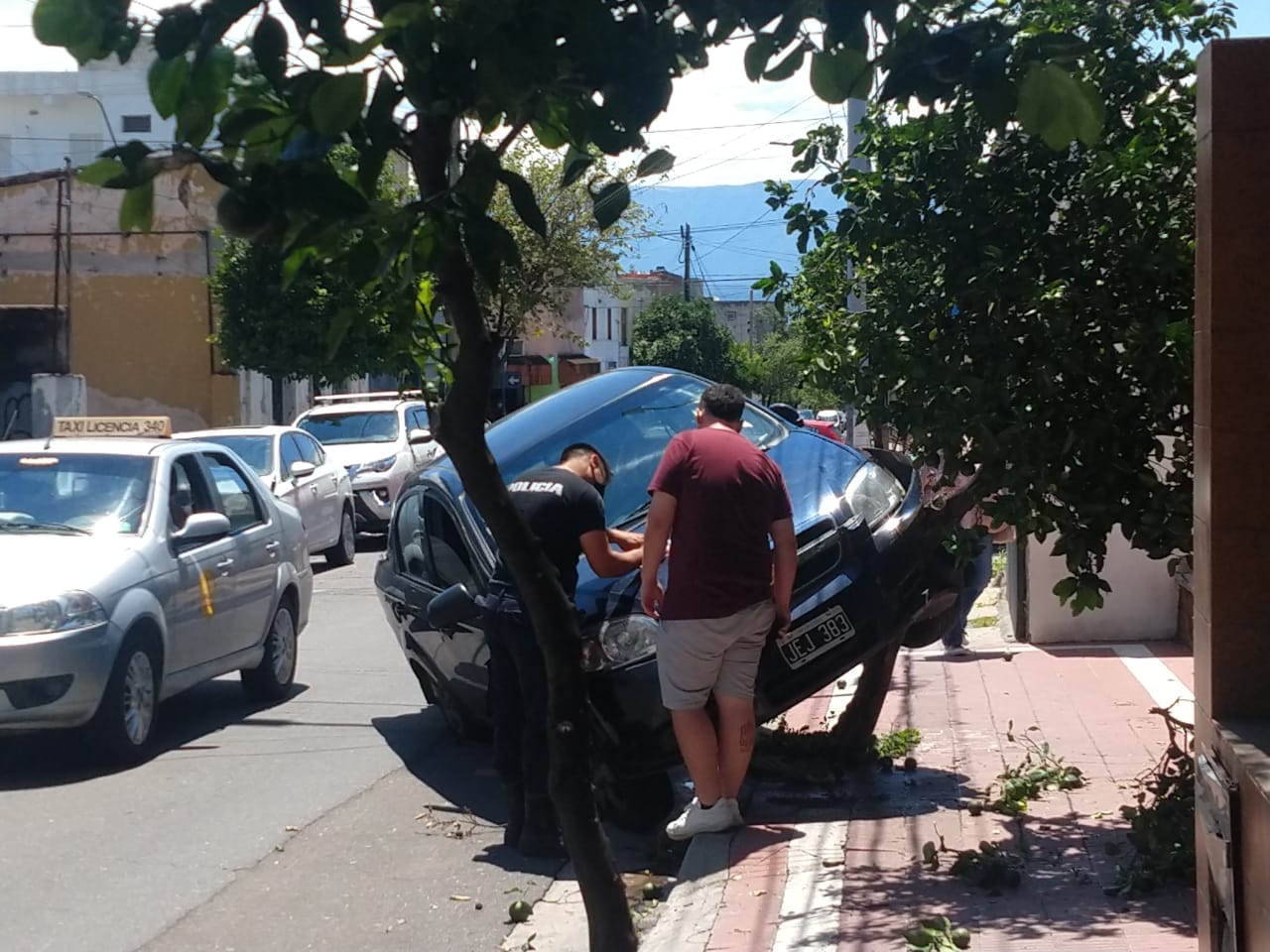 En el lugar, el conductor de un automóvil Chevrolet, por razones que se tratan de establecer, perdió el control e impactó contra un árbol de la vereda.