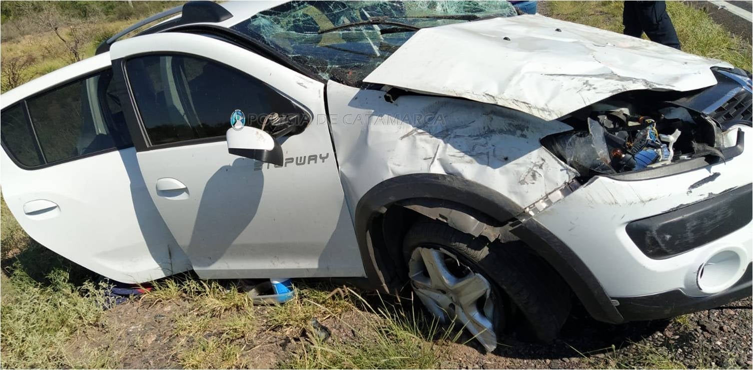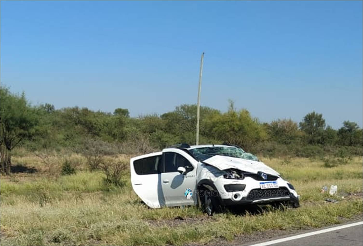 Javier Fernando Morales (40) circulaba en un automóvil Renault Sandero, dominio AE311CG, de color blanco, en compañía de María Berj (57), Melisa Astarga (37) y tres niñas; dos de 1 año y una de 5 años, todos oriundos de la vecina provincia de Tucumán, y por motivos que se investigan, perdió el control del rodado y terminó volcando a un costado de la banquina.