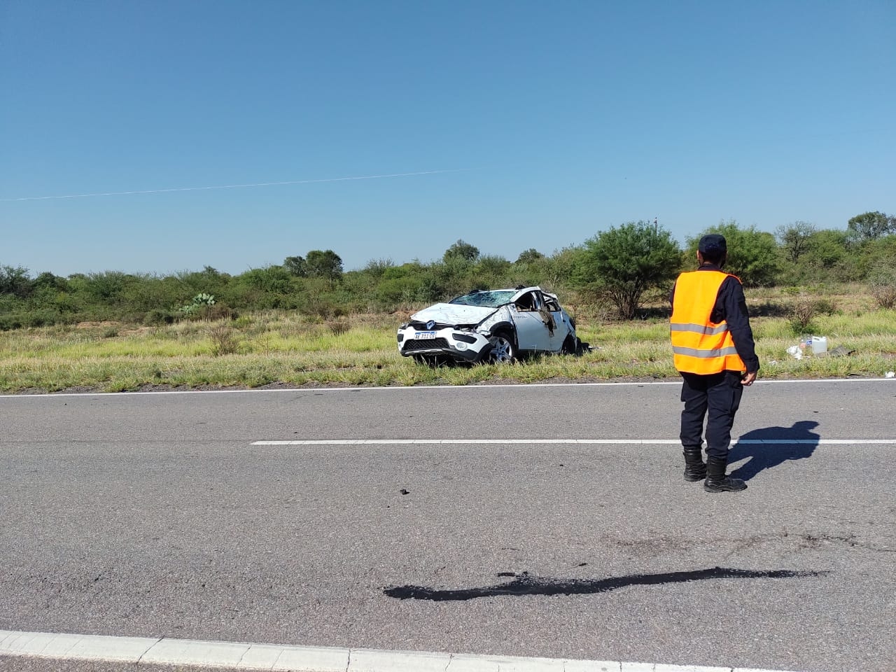 En el lugar, un automóvil en el que viajaban un matrimonio y tres niñas, por razones que se tratan de establecer, perdieron el control y volcaron violentamente.
