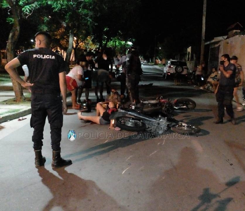 Un adolescente de 16 años circulaba en una motocicleta Honda CG 150 cc., dominio 901HFF, de color negro, y por motivos que se investigan, colisionó con una motocicleta Yamaha YBR roja 125 cc., dominio 427JFN, al mando de Damián Castaño (19) en compañía de Karen Sosa (19), quienes sufrieron lesiones que demandaron la asistencia de facultativos médicos del SAME.