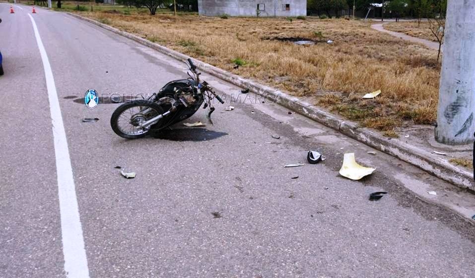En el lugar, una motocicleta 110cc., en la que se conducía un adolescente de 17 años, que por razones que es materia de investigación, perdió el control del rodado e impactó contra un poste del tendido eléctrico.