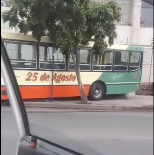 El vehículo pertenece a la empresa 25 de Agosto, y afortunadamente al momento del episodio no había personas en el lugar.