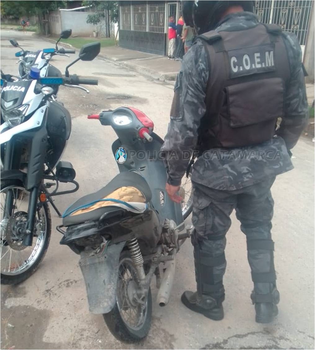 En el lugar, procedió a controlar una motocicleta Honda Biz 110 cc., de colores negro y rojo, al mando de un joven de 28 años.