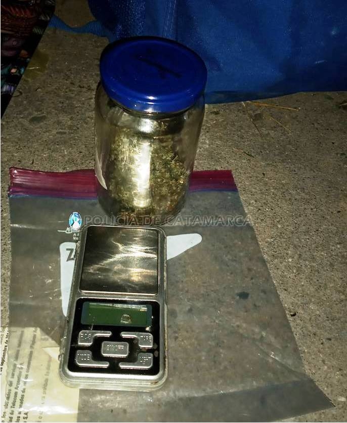 Cabe señalar, que al momento de realizarle la requisa personal, los policías encontraron entre sus pertenencias un cigarrillo de armado casero, por lo que de inmediato solicitaron la presencia de sus pares de la Seccional Sexta, que por jurisdicción corresponde, y de la Dirección Drogas Peligrosas de la Policía, quienes encontraron entre sus pertenencias 13 pastillas de Midazolan, una balanza apta para pesar gramos, una tijera y un triturador, cuatro envoltorios de plástico con una sustancia tipo herbácea, y un frasco con la misma sustancia.