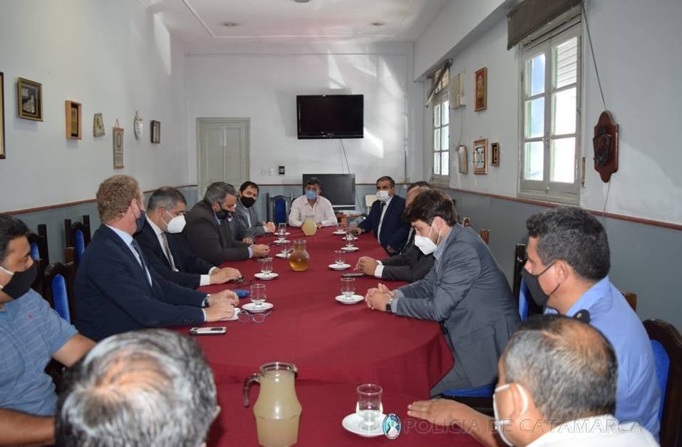 En la jornada de este miércoles, en la Sala de Situación de la Jefatura General de Policía, el secretario de Seguridad, Martín Miranda, el Jefe de Policía, Comisario General (RE) Lic. Ángel Ignacio Agüero, recibieron al Director General de la Policía Judicial, Dr. Marcelo Acevedo, y a los titulares de las Fiscalías de Instrucción en lo Penal que integran el Poder Judicial de la provincia.