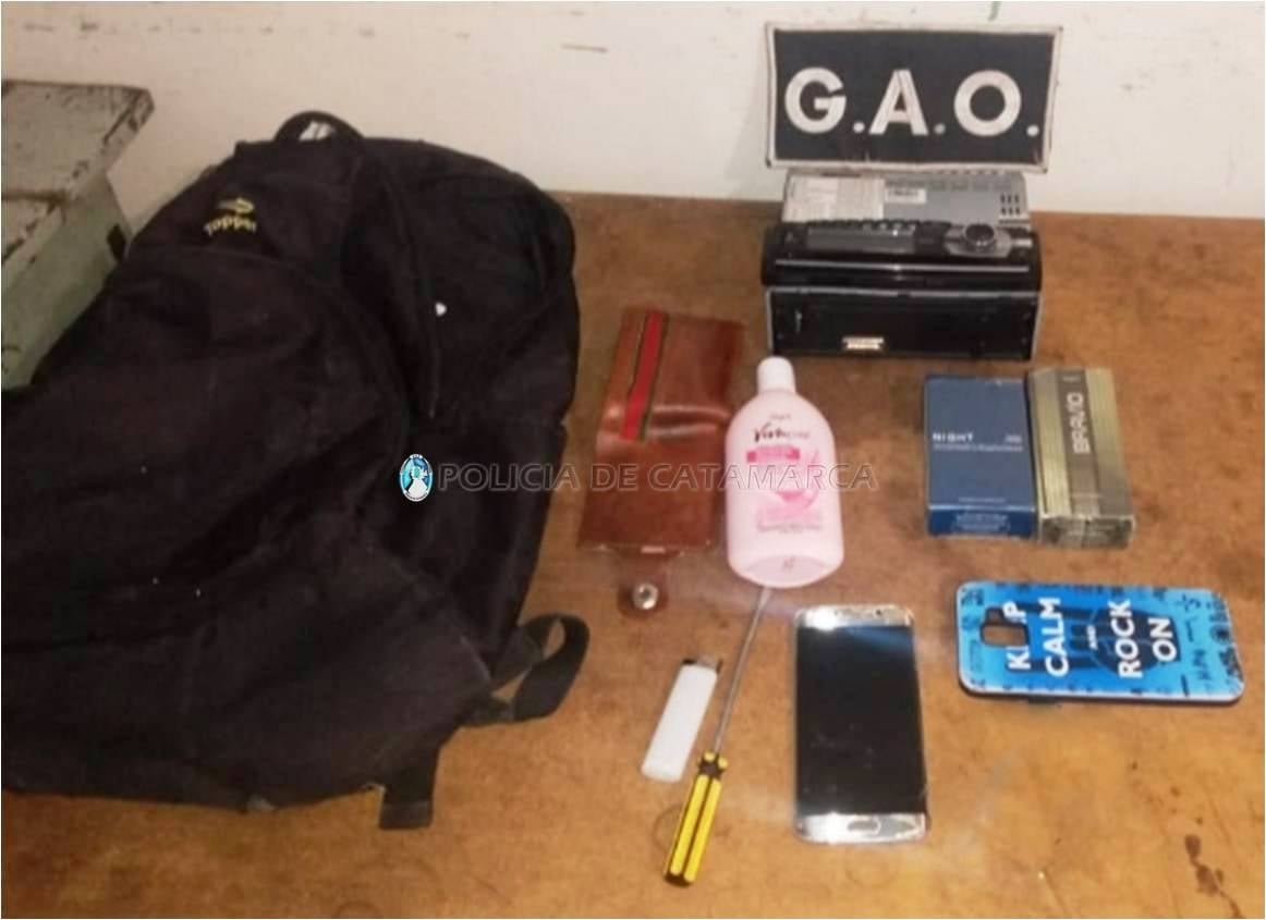 En la oportunidad, secuestraron una mochila que en su interior contenía un estéreo para automóvil marca Positron, un destornillador plano, un teléfono celular Samsung S-6 y dos perfumes, entre otros elementos.
