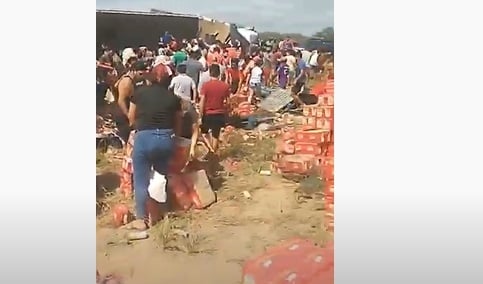 Tras el accidente, pobladores se acercaron al lugar y saquearon la mercadería. A raíz de ello se recomendó transitar con precaución.