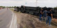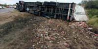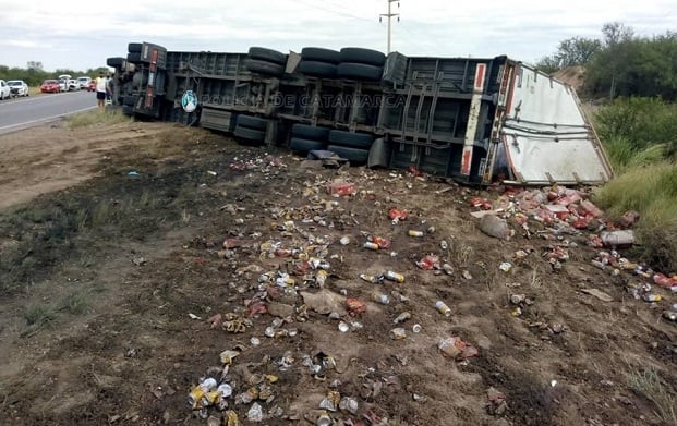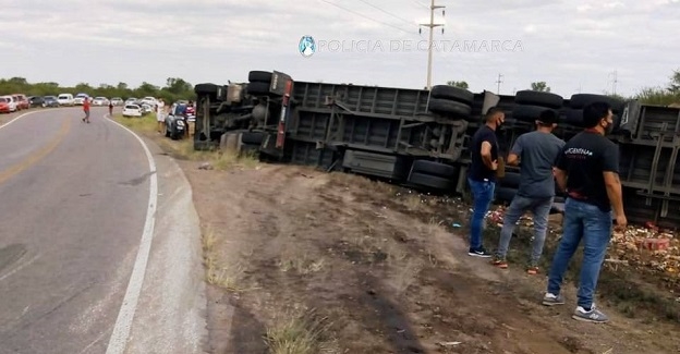 Según informó la policía, Gastón Alejandro de la Llana (40), oriundo de la Provincia de Buenos Aires, conducía un camión Iveco, dominio AE325OE, de color blanco, con acoplado, transportando bebidas, y por causas que se tratan de establecer, perdió el control del rodado y el acoplado volcó a un costado de la banquina.