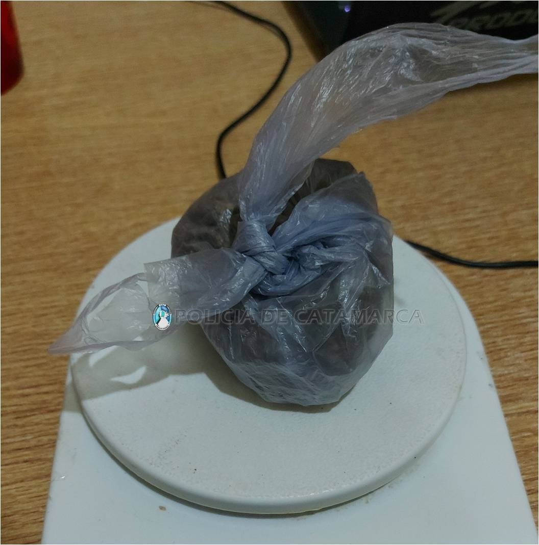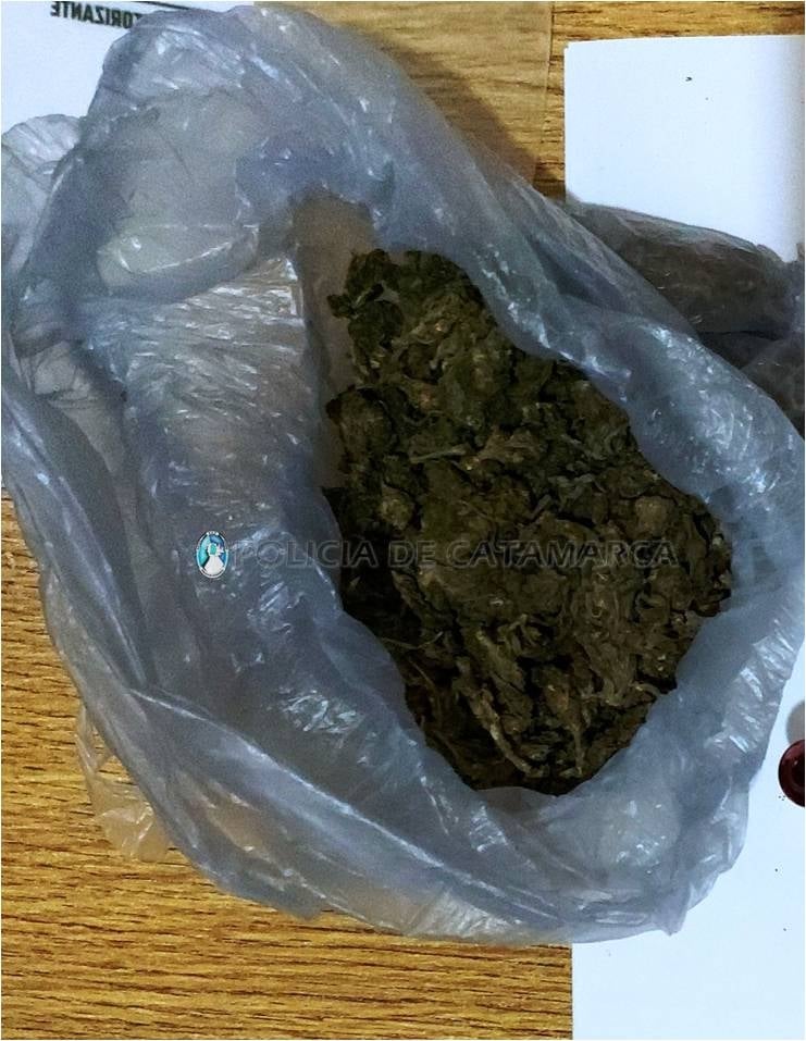 Tras rastrillar el camino, los policías incautaron un envoltorio de nylon que contenía una sustancia herbácea, y que habría arrojado uno de los motociclistas durante la huida, por lo cual se solicitó la colaboración del Grupo Antinarcóticos de Unidades Regionales (GAUR Tinogasta), dependiente de la Dirección Drogas Peligrosas de la Policía.