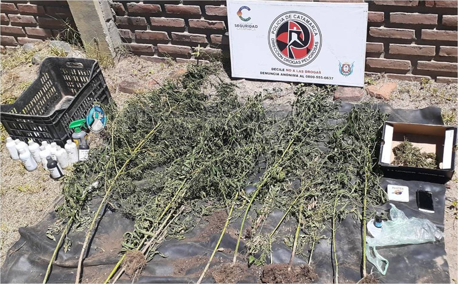 En el lugar, los policías encontraron una sustancia herbácea que arrojó un peso de 22 gr. de marihuana, un teléfono celular marca LG, de color blanco, 14 plantas de marihuana, de diferentes medidas y etapas de crecimiento, 32 semillas de la variedad Cannabis Sativa, 12 frascos de fertilizantes, y tres recortes de nylon que quedaron en calidad de secuestro a disposición de la Justicia interviniente, desde donde se indicaron las medidas a seguir.