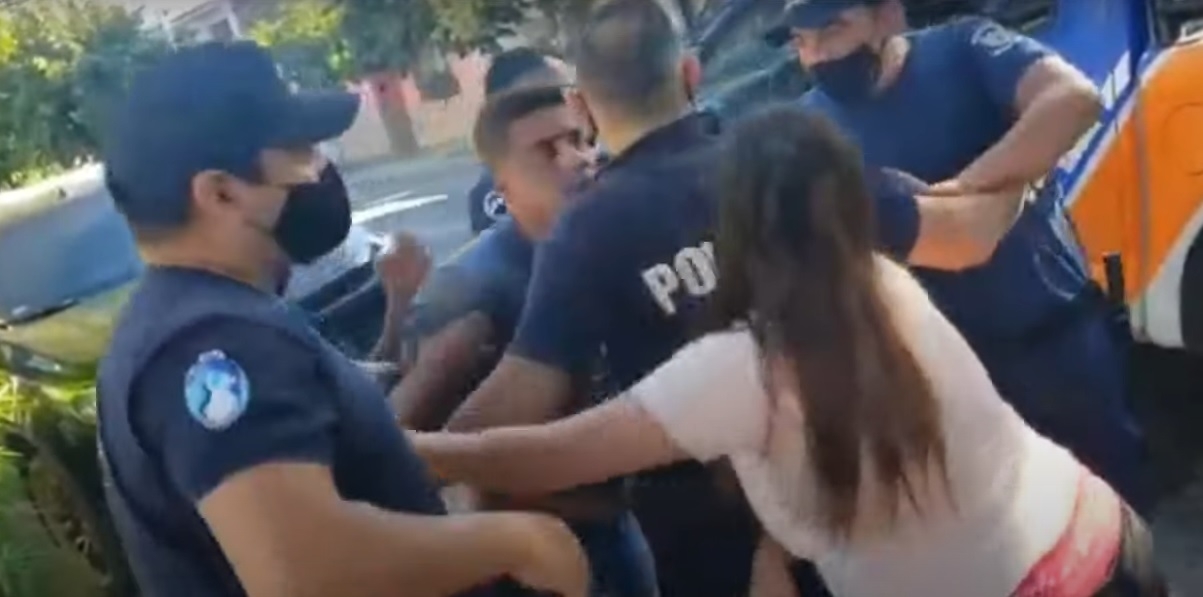 Cabe señalar que, durante el procedimiento, las demás personas presentes también propinaron golpes a los efectivos, por lo cual solicitaron la colaboración de sus pares de la Seccional Cuarta, para poder reducirlos ya que en todo momento se mostraron alterados, siendo necesario el uso de la fuerza pública para hacer cesar la agresión.
