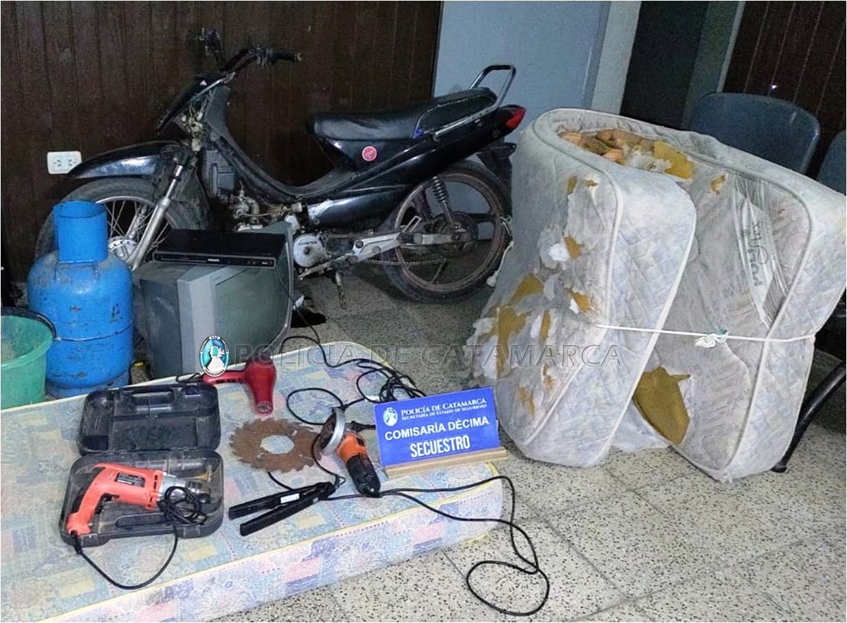 Durante el procedimiento, los policías procedieron a incautar dos colchones, una amoladora Black&Decker, un taladro Dowen Pagio, con su respectivo estuche y disco, una garrafa de gas, de 10 kg., un televisor Philips, de 21 pulgadas, una planchita para cabello, un secador para pelo, un ventilador, un DVD Philips, y una motocicleta Honda 110 cc., en la que circulaban, que quedaron en calidad de secuestro y, al igual que las aprehendidas, fueron puestos a disposición de la Fiscalía de Instrucción en feria.