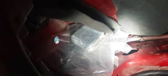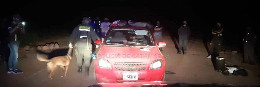 En el lugar, controlaron un automóvil Chevrolet Celta, de color rojo, en la que circulaba un hombre. Al inspeccionar el rodado, los policías con la ayuda de canes adiestrados para detectar estupefacientes, encontraron en el interior del baúl tres panes compactados de una sustancia tipo herbácea que, luego de ser sometida a la prueba de campo correspondiente, arrojaron como resultado que se tratarían de 1,175 Kg. de marihuana, que quedaron en calidad de secuestro.