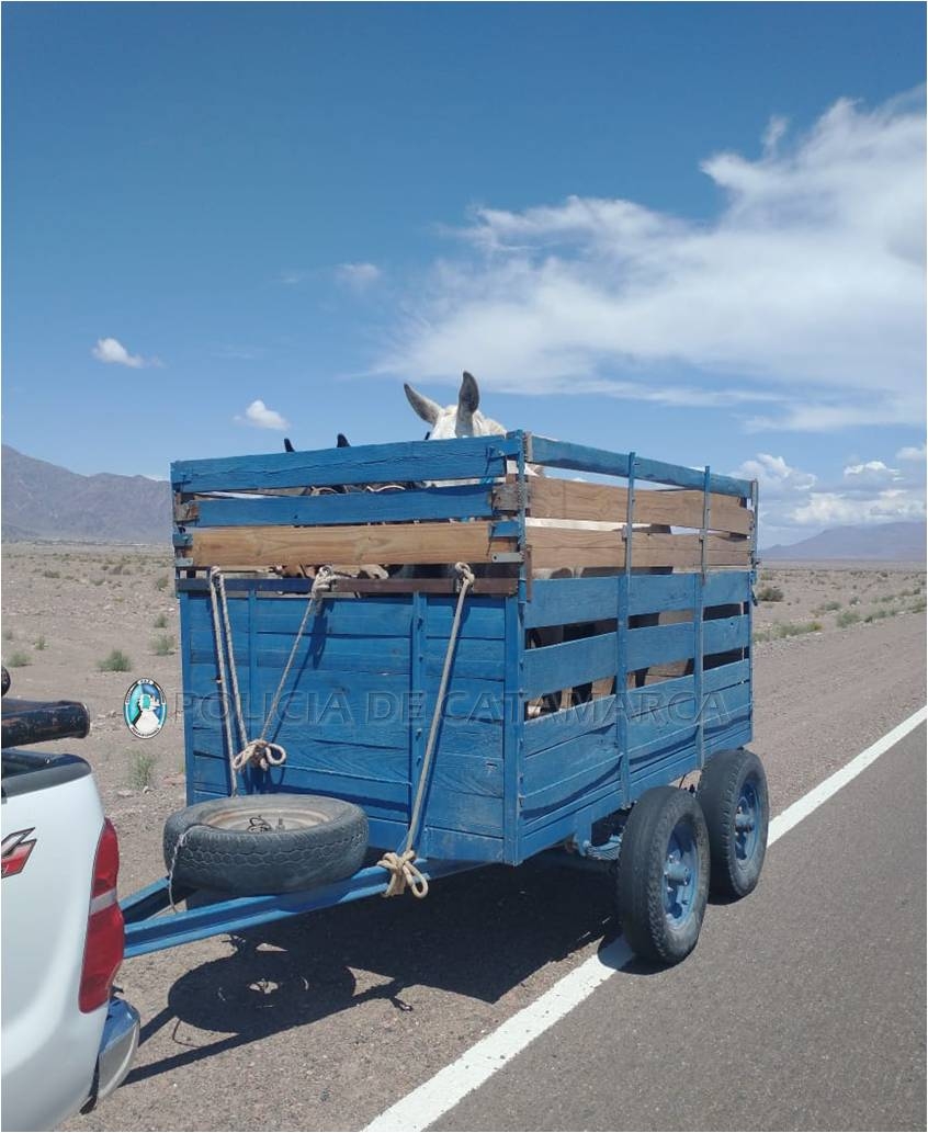 En el lugar, procedieron a controlar una camioneta en la que circulaban cinco sujetos que transportaban en un tráiler con tres animales equinos que serían producto de un hecho ilícito.