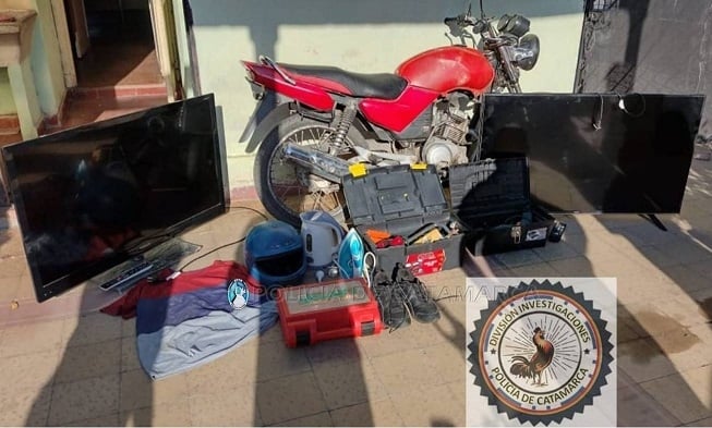 Según se informó, se secuestraron dos televisores LED de 43 pulgadas, varias herramientas, y prendas de vestir. Además se incautó una motocicleta Yamaha YBR 125 cc., de color rojo.