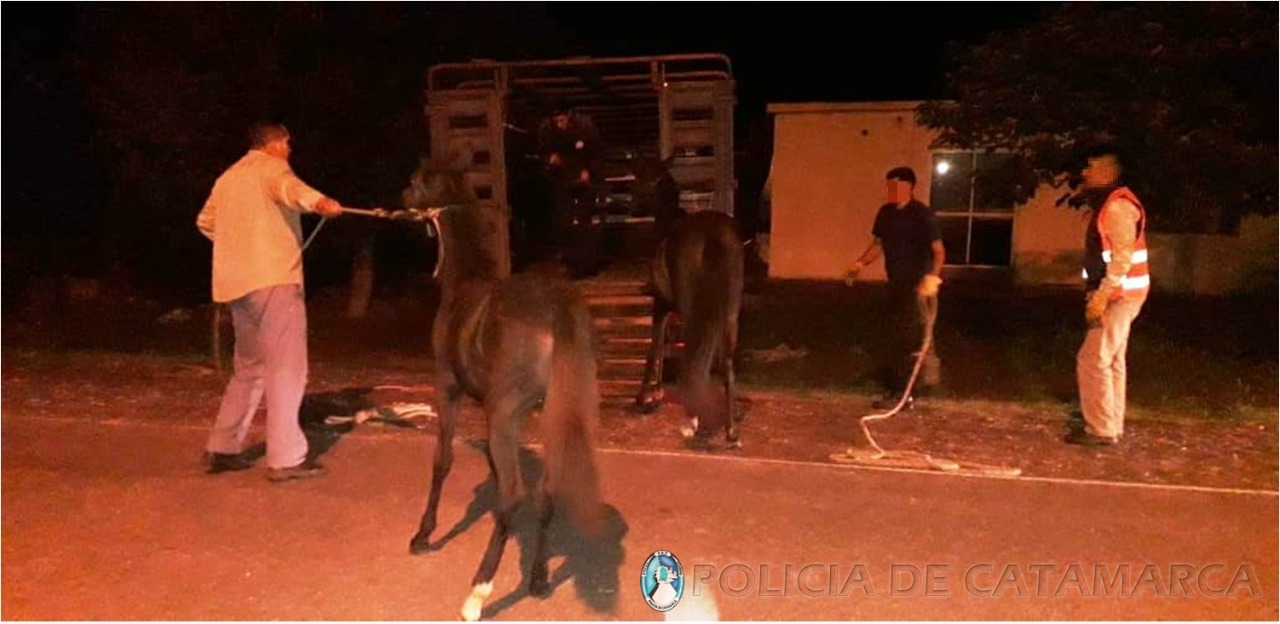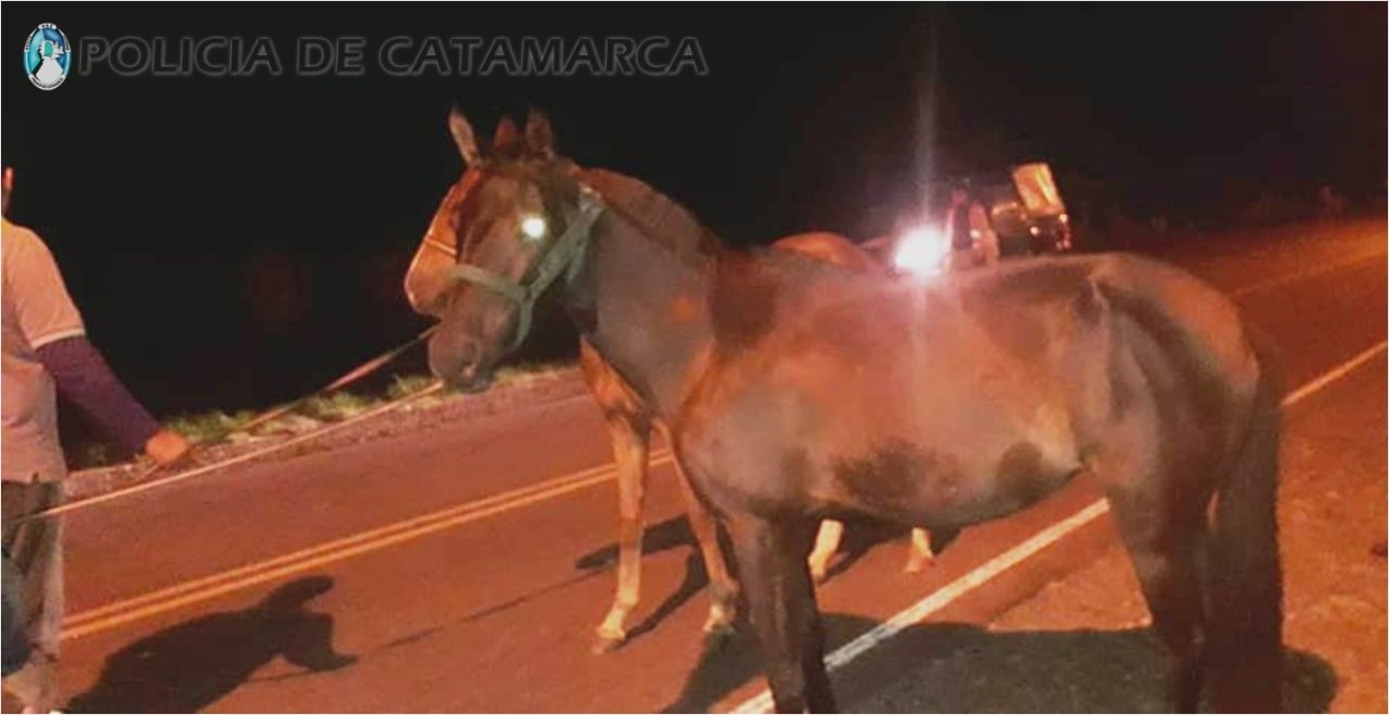 Personal de la División Policía Montada, dependiente de la Dirección de Unidades Especiales de la Policía, procedió al secuestro de un caballo tostado listado, marca “EV/21”; una yegua zaina, miembro posterior izquierdo blanco, con marca de fuego poco legible y un potrillo al pie pelaje zaino, miembro posterior izquierdo blanco.