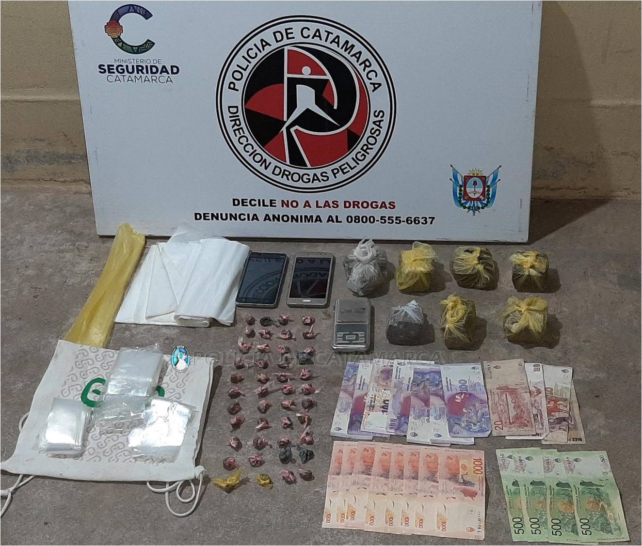 Tras materializar una orden de allanamiento en una vivienda de la calle N° 47, del Complejo Habitacional Valle Chico, donde residen dos personas, una del sexo masculino y otra del sexo femenino, los Policías encontraron 51 envoltorios de nylon con una sustancia tipo herbácea, que al ser sometidos a la prueba de campo correspondiente arrojo un resultado de 668 gr. de marihuana, que quedaron en calidad de secuestro, al igual que una balanza gramera, dos teléfonos celulares marca Samsung J-2, y la suma de 10 mil pesos en efectivo.